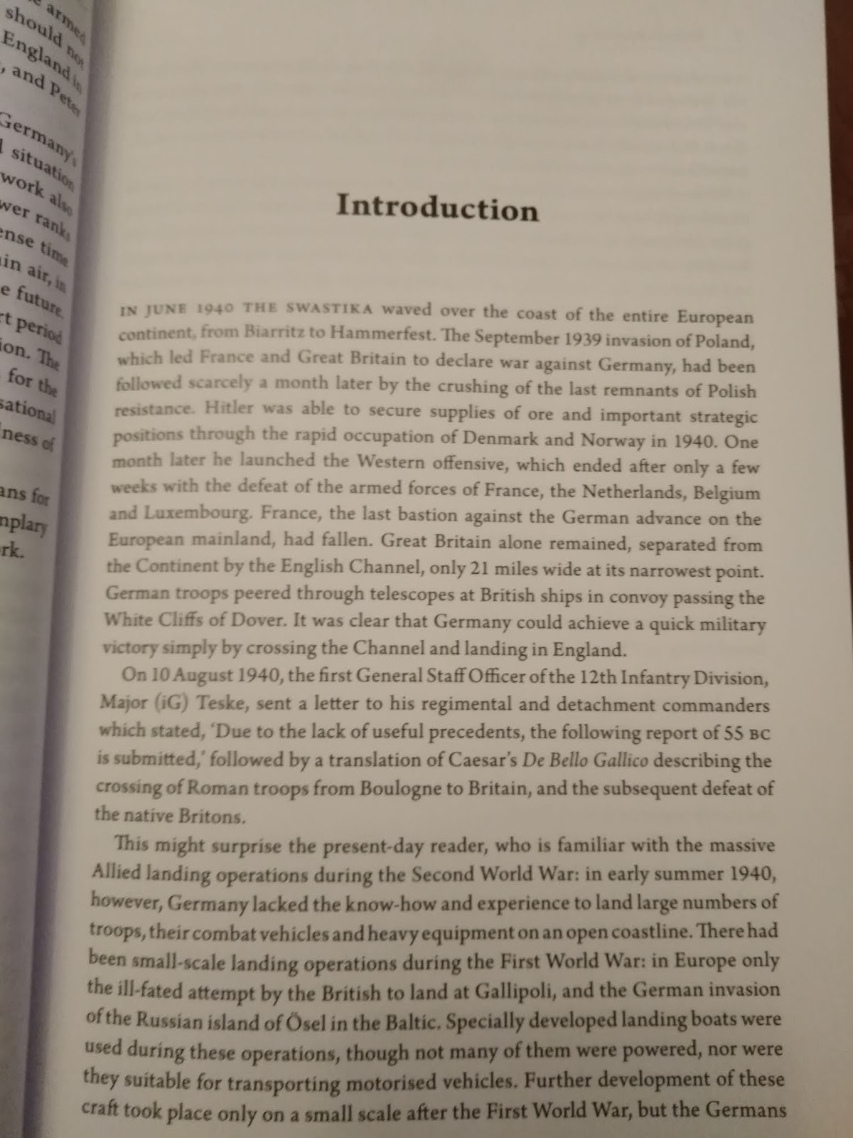 Il libro edito da Greenhill Books che ultimamente ha pubblicato diversi interessanti memorie e libri sullo sforzo bellico tedesco è di estremo interesse per chiunque voglia sapere di più su questa operazione che ha aleggiato minacciosa sulle sponde dell'Inghilterra ma di cui credo pochi conoscono tutti i dettagli contenuti nel libro, un libro che farà felici tutti gli appassionati di storia militare della seconda guerra mondiale che così potranno tracciare similitudini e differenze con quella che fu poi l'Operazione Overlord.